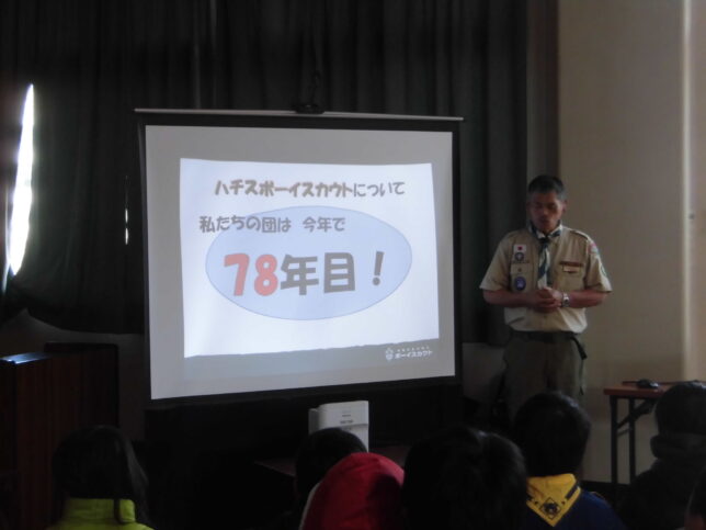 ボーイスカウトの歴史、団の歴史を写真で追いながらボーイスカウトの認識を深め、「表現」をテーマに各隊、趣向を凝らした活動発表やスタンツを披露してくれました。B-P祭は、いつも別活動の各隊が親睦を深められる機会ですので大切に続けていきたいと思います。