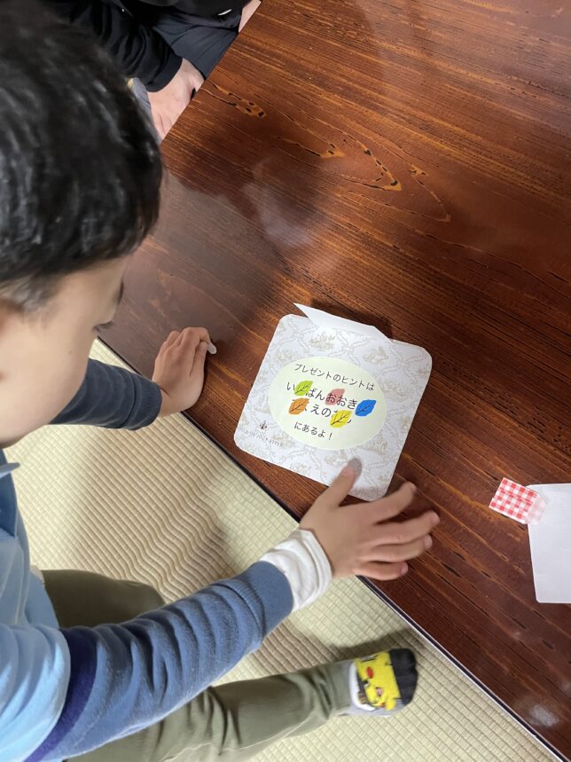 指示書に従って過去の集会につながるゲーム(ミッション)を順番に楽しみ、プレゼントのヒントの在処を示す文章を完成させました。