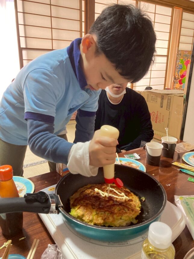 無事にプレゼントをゲットした後は、おやつにお好み焼きを作って食べました。