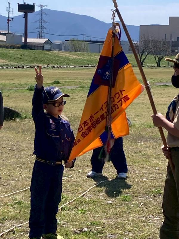 新しいユニフォームに身を包んだ青き新しきスカウト。これからの愉しい冒険に積極的に臨んでほしいと思います。